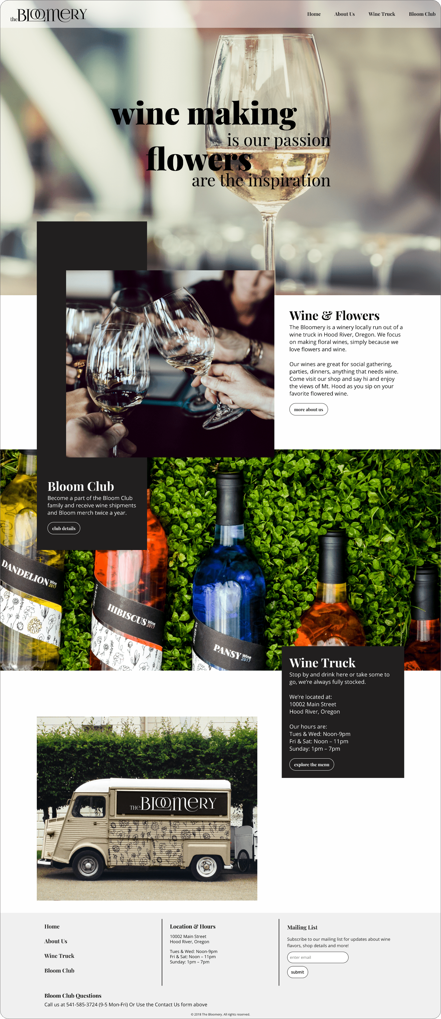 The finished project included branded winery menus, bottle packaging and labels, and a website.